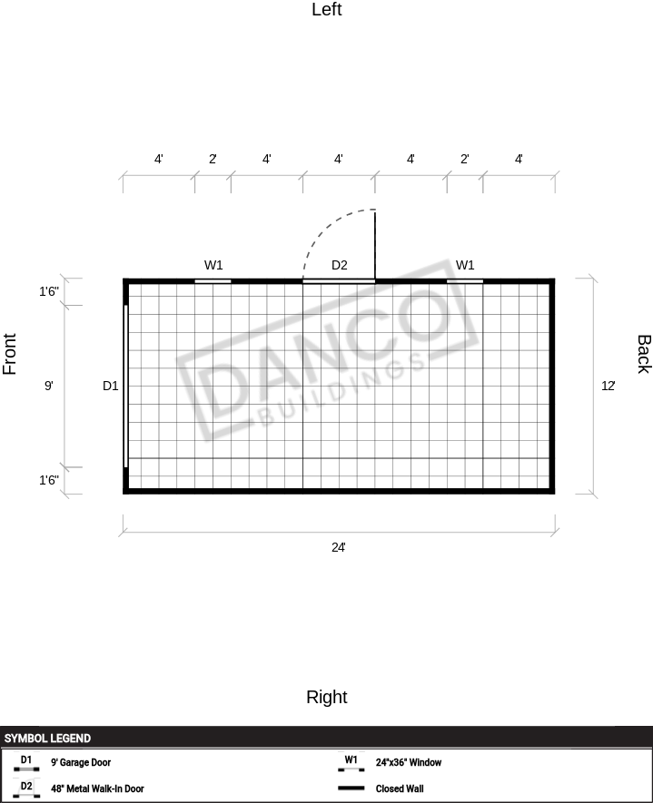 | Doors | 9' Garage Door, 48" Metal Walk-In Door |