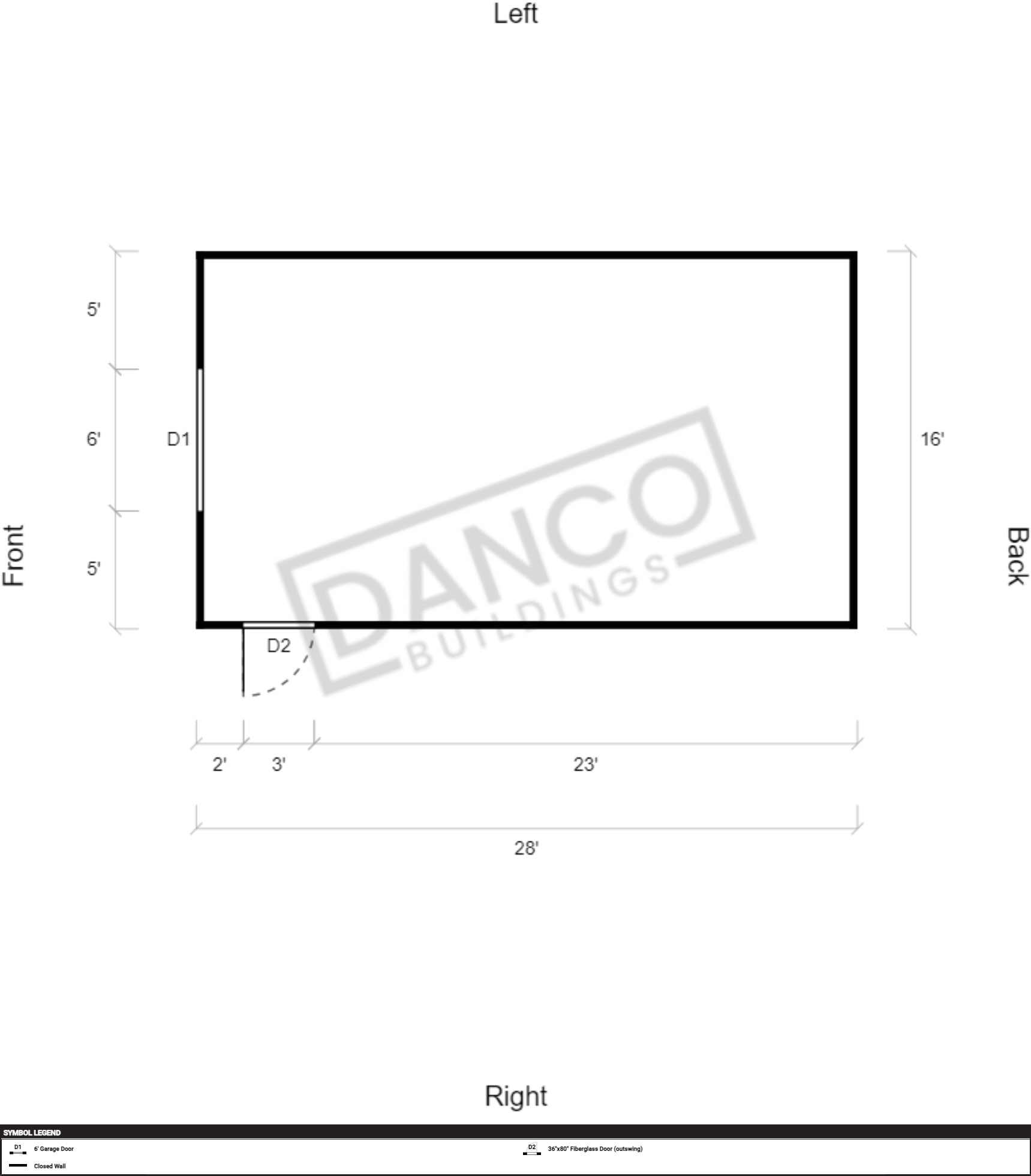 | Doors | 36"x80" Fiberglass Door (outswing), Hinges Left, 6' Garage Door |