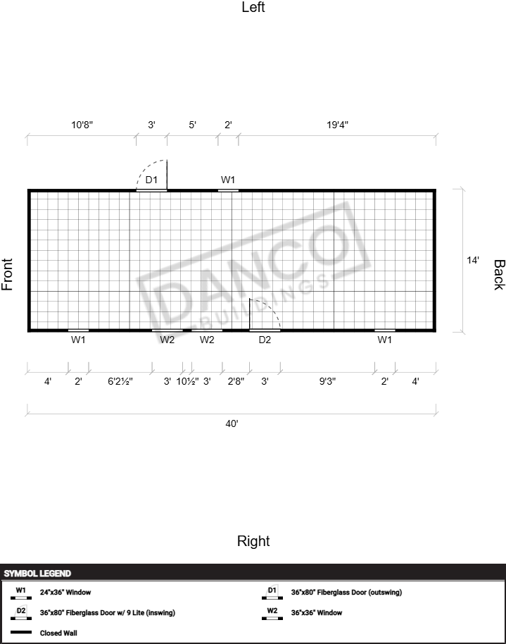 | Doors | 36"x80" Fiberglass Door (outswing), Hinges Left, 36"x80" Fiberglass Door w/ 9 Lite (inswing), Hinges Left |