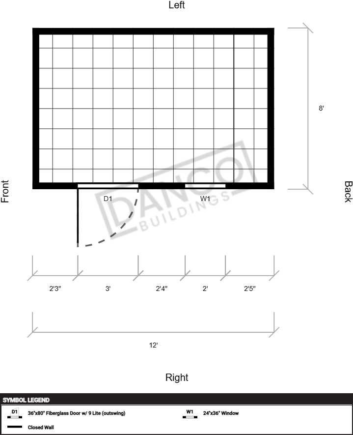 | Doors | 72" Tall Wood Walk-In Door, 36"x80" Fiberglass Door w/ 9 Lite (outswing), Hinges Left |
