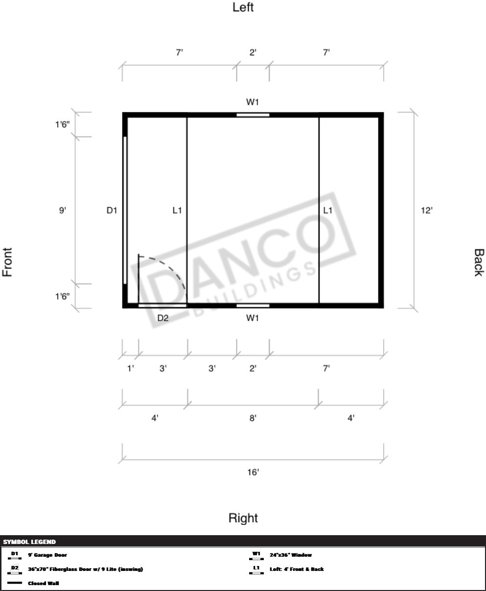 | Doors | 36"x70" Fiberglass Door w/ 9 Lite (inswing), Hinges Left, 9' Garage Door |