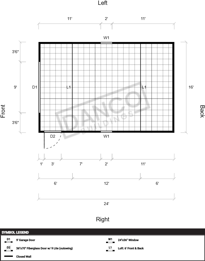 | Doors | 9' Garage Door, 36"x70" Fiberglass Door w/ 9 Lite (outswing), Hinges Left |