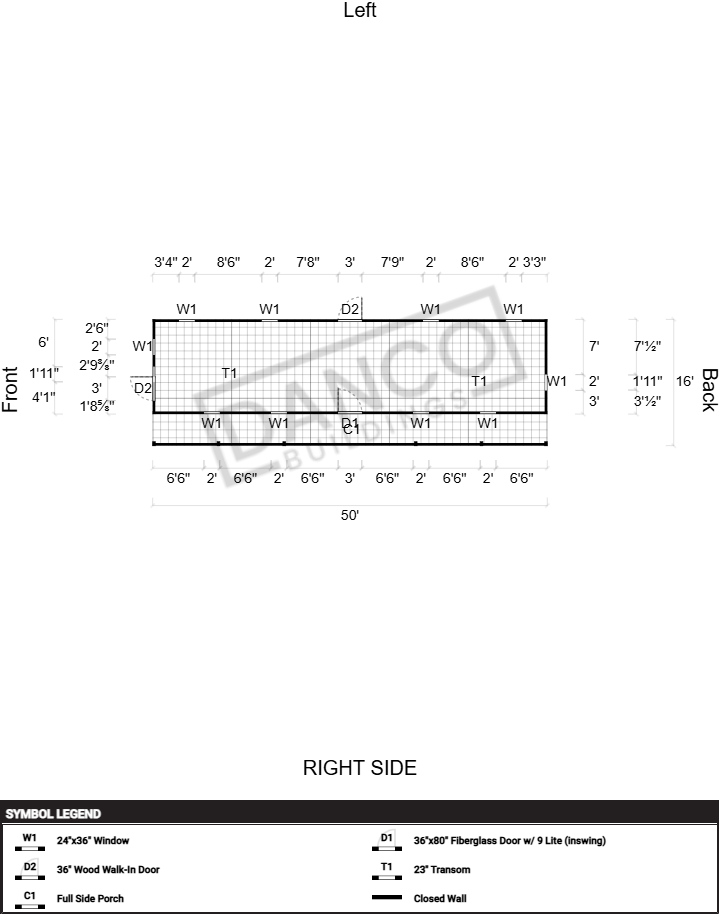 | Doors | 36" Wood Walk-In Door, Hinges Left, 36"x80" Fiberglass Door w/ 9 Lite (inswing), Hinges Left |