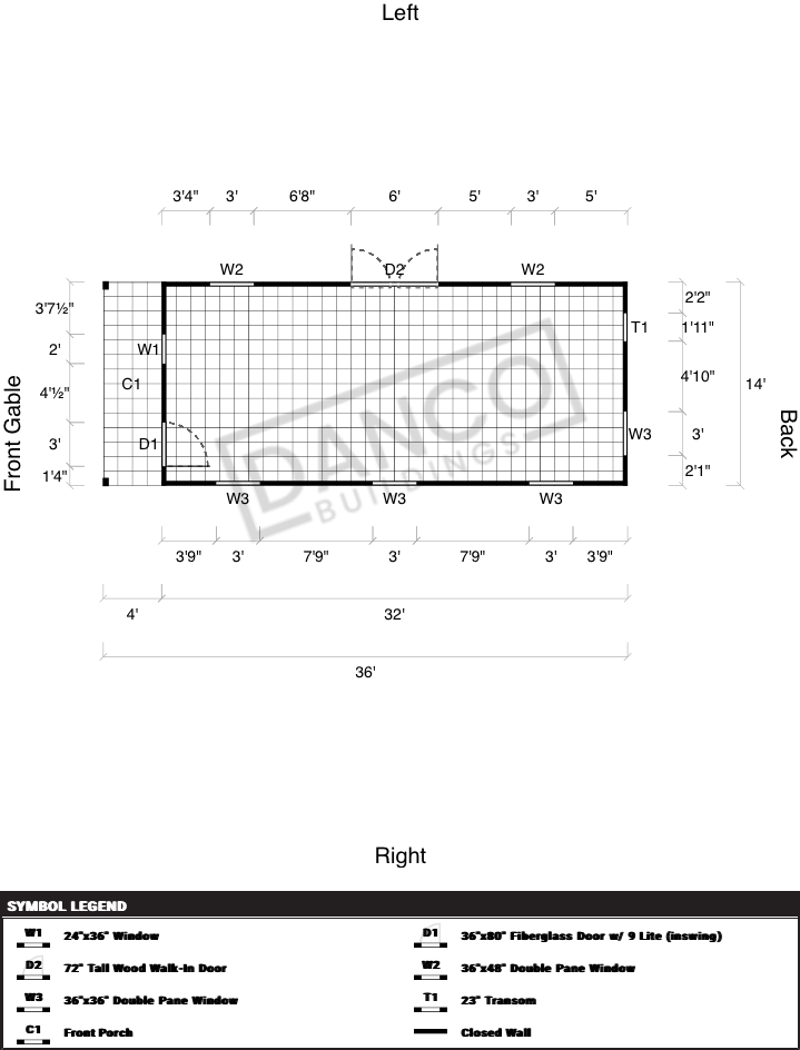 | Doors | 72" Tall Wood Walk-In Door, 36"x80" Fiberglass Door w/ 9 Lite (inswing), Hinges Right |