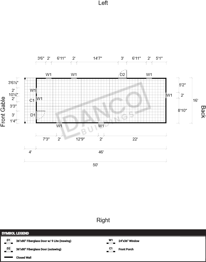 | Doors | 36"x80" Fiberglass Door w/ 9 Lite (inswing), Hinges Left, 36"x80" Fiberglass Door (outswing), Hinges Left |