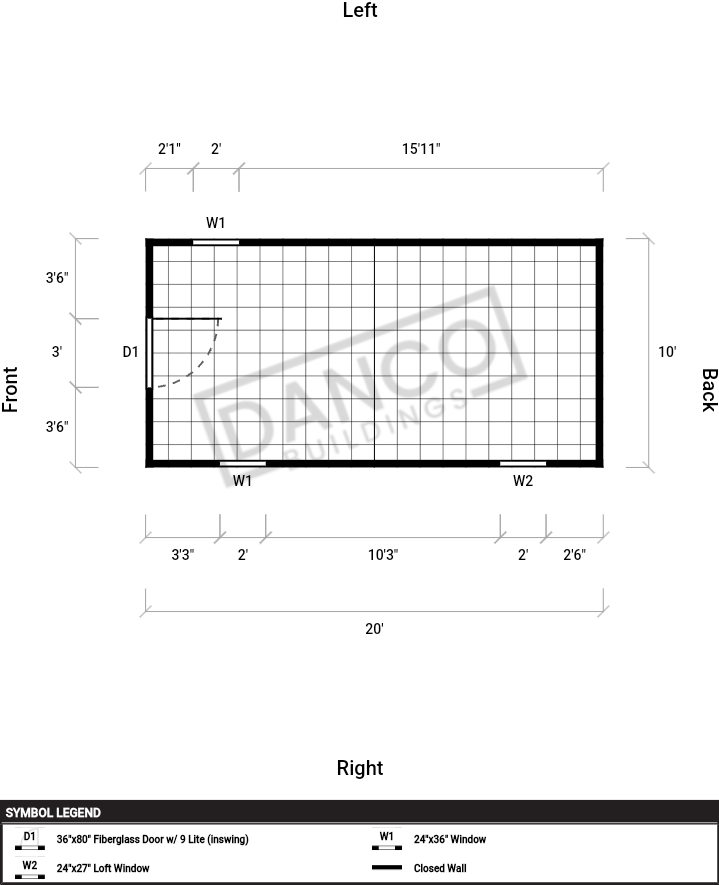 | Windows | 24"x27" Loft Window, 24"x36" Window |