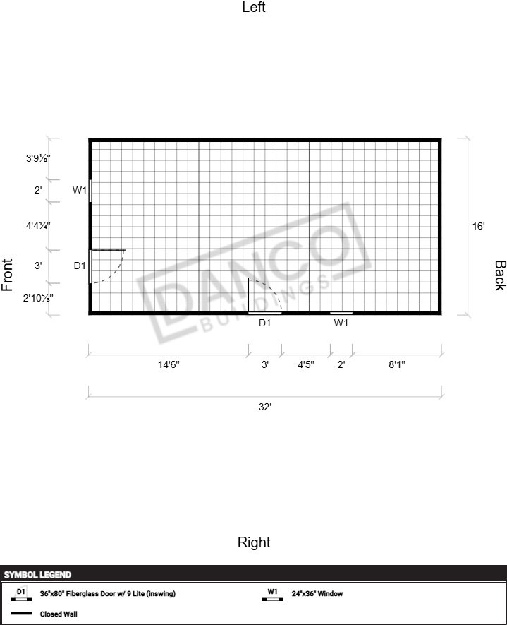 | Doors | 36"x80" Fiberglass Door w/ 9 Lite (inswing), Hinges Left |