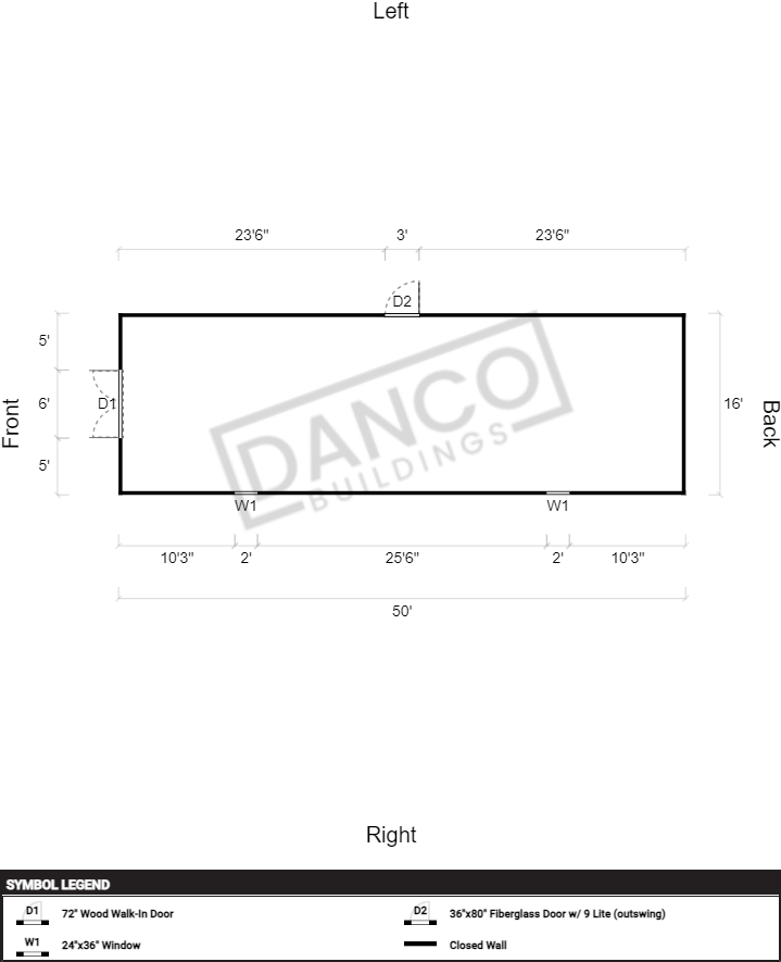 | Doors | 36"x80" Fiberglass Door w/ 9 Lite (outswing), Hinges Left, 72" Wood Walk-In Door |