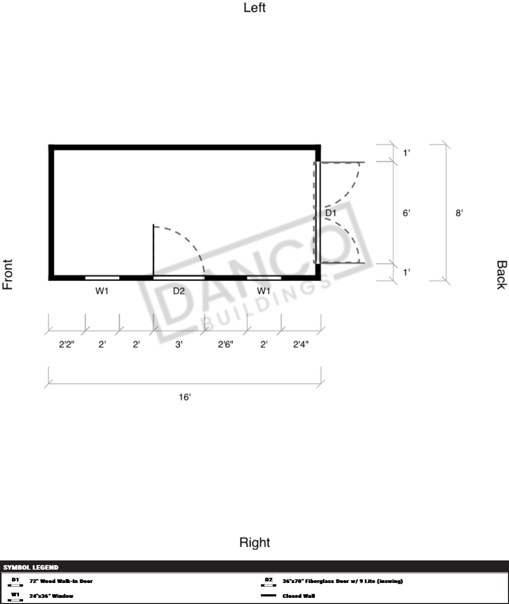 | Doors | 36"x70" Fiberglass Door w/ 9 Lite (inswing), Hinges Left, 72" Wood Walk-In Door |